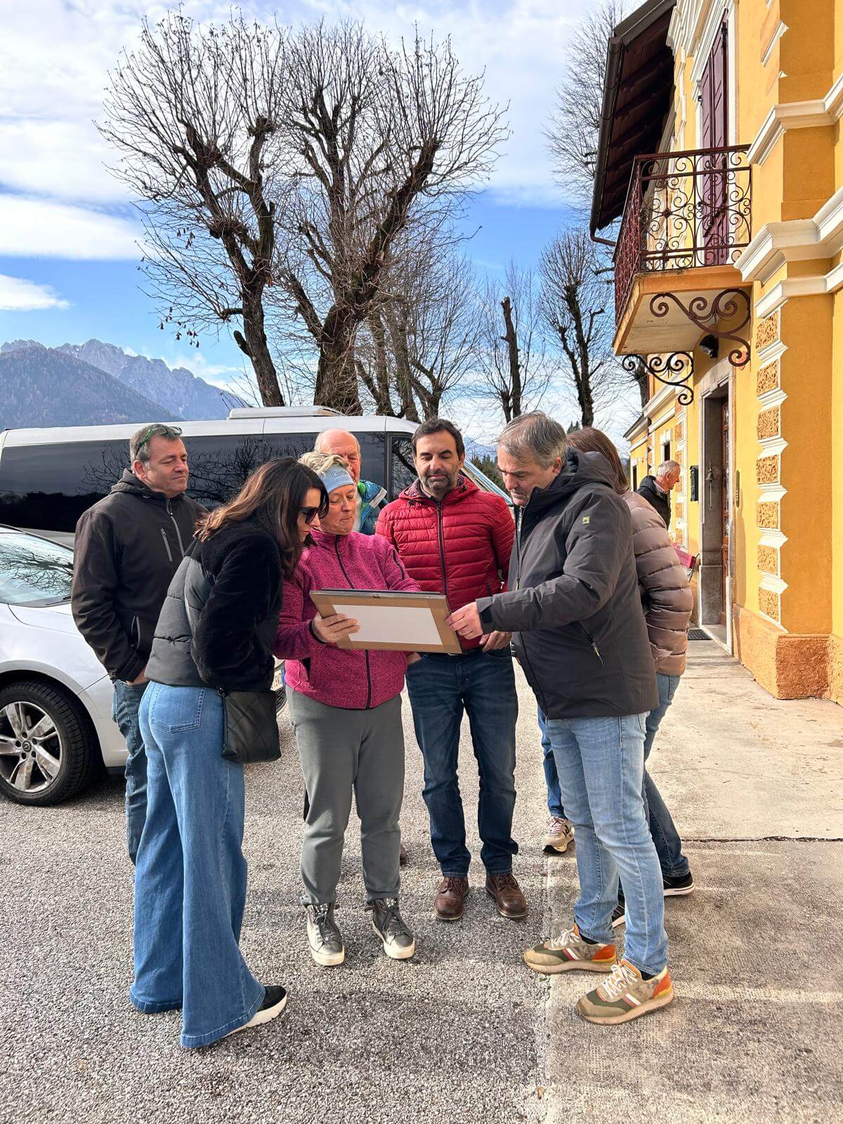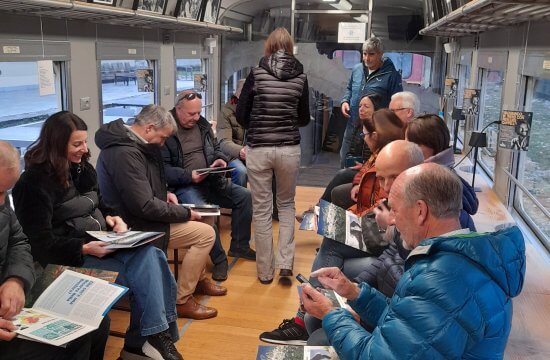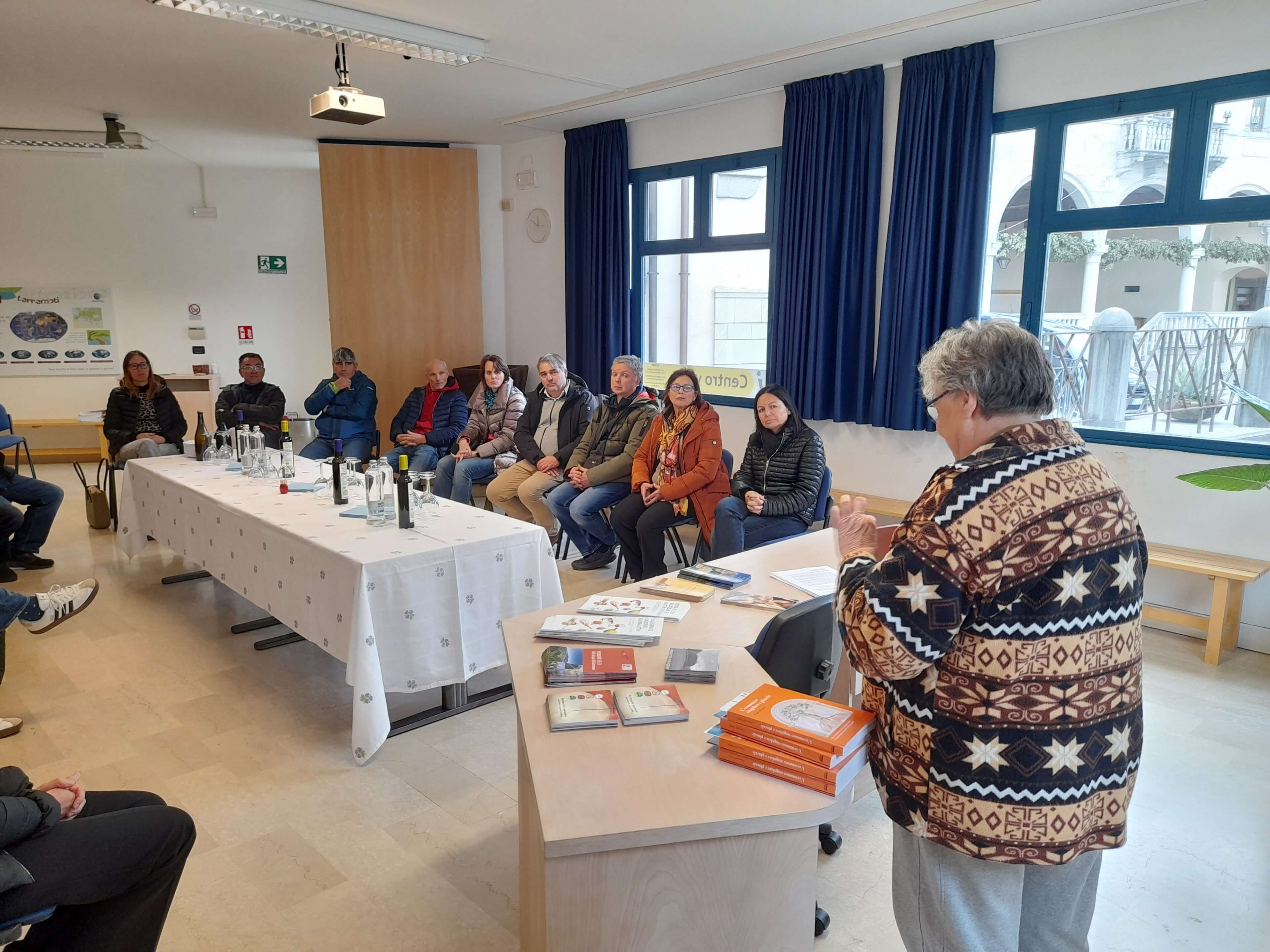Nach dem Empfang durch die Mitarbeiterinnen der LAG Open LEADER führte der erste Besuch zur Azienda Agricola Fachin Fernanda in Gemona del Friuli mit Vorstellung des Projekts „Verbesserung der Lieferkette Olivenöl“. Danach ging es weiter zum „Ecomuseo delle Acque del Gemonese“, wo das Ökomuseum und regionale Slow-Food-Produkte vorgestellt wurden. Nach dem Mittagessen in der „Osteria 38° Parallelo“ erhielt die Gruppe dort Einblicke in das Projekt „Affittacamere 38°“. Abschließend wurde an diesem Tag die Sanierung der historischen „Locomotrice Littorina” sowie das Projekt des „Consorzio Vicinale Bagni di Lusnizza“ zur Aufwertung des Schwefelwasserkiosks vorgestellt.